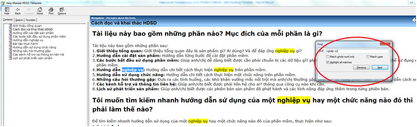 Để tìm kiếm nhanh hướng dẫn sử dụng của một nghiệp vụ hay một chức năng nào đó của phần mềm, thực hiện như sau: