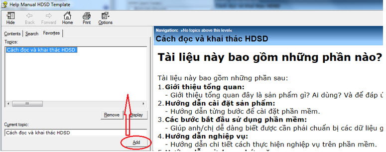 Tại trang hướng dẫn đang xem, chuyển sang tab Favorites, chọn nút Add như hình => Trang hướng dẫn này sẽ được thêm vào phần Favorites.